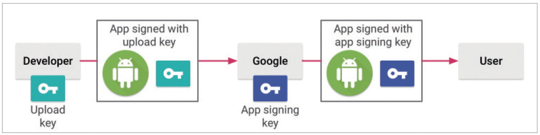안드로이드 앱은 키로 서명되어 있어야 합니다. 앱에 서명하는 키를 관리하는 방법은 크게 2가지로