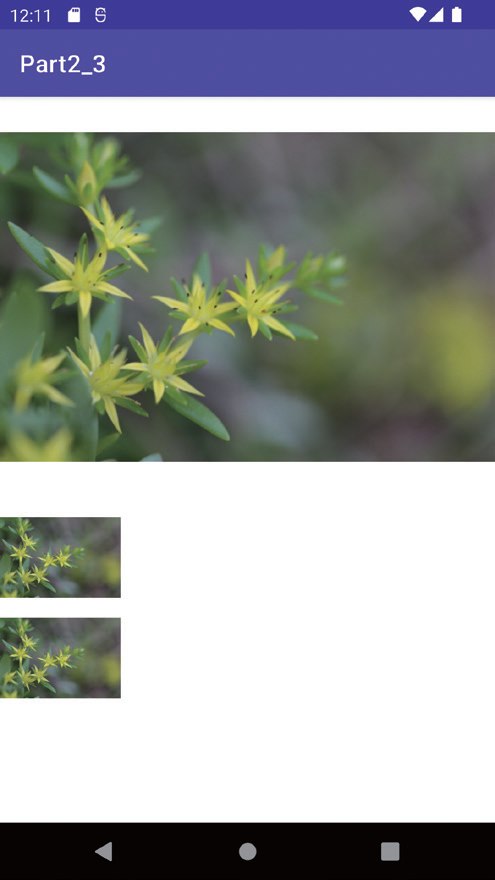 ImageView의 속성을 이용하여 같은 이미지를 3번 출력하는 코드입니다.