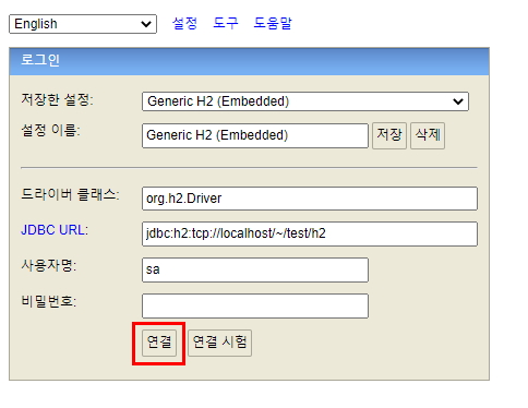 이렇게 되면 H2 데이터베이스 이용준비는 끝났습니다.