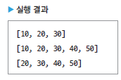 그런데 list3은 크기가 3이므로 4번째 데이터를 추가한 list3.add(40) 코드는 런 타임 때 오류가 발생합니다. 리스트를 선언할 때 크기를 지정하면 그 크기만큼만 데이터를 추가할 수 있습니다. 만약 처음에 지정한 크기보다 많은 데이터를 저장할 수 있도록 허용하려면 filled() 생성자에 growable 매개변수를 true로 지정해 주어야 합니다.