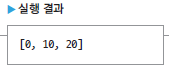 리스트를 초기화할 때 특정한 로직으로 구성된 데이터를 지정할 수도 있습니다. 이때는 초깃값을 지정하는 두 번째 매개변수를 함수로 지정하면 되는데, generate() 생성자가 이러한 기능을 제공합니다. 다음 코드에서는 generate() 생성자의 두 번째 매개변수를 (index) => index * 10로 지정했는데 이는 다트에서 함수를 선언하는 기법이며 이후 함수를 다루는 부분에서 자세히 설명하겠습니다.