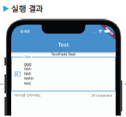 그런데 minLines와 함께 사용하면 텍스트 필드가 화면에 출력될 때 minLines에 설정한 줄 수 크기로 출력되다가 글을 채우면 maxLines에 설정한 크기만큼 늘어납니다. 예를 들어 minLines: 2와 maxLines: 5로 지정하면 처음에는 2줄 입력 크기로 출력되고 사용자의 입력에 따라 최대 5줄까지 늘어납니다.