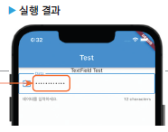 사용자가 입력하는 글이 텍스트 필드에 ****처럼 보여야 할 때가 있습니다. 보통 비밀번호처럼 보안과 관련된 텍스트를 감춰야 할 때입니다. 이 기능은 obscureText 속성을 true로 설정하면 됩니다.