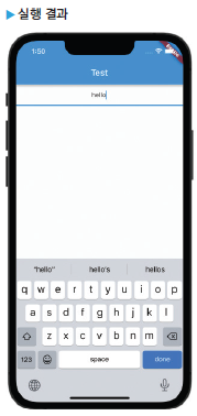 TextField에 글을 입력하려고 포커스를 주면 화면 아래쪽에서 소프트 키보드(SoftKeyboard)가 자동으로 올라오며 사용자는 이 키보드로 글을 입력합니다. 소프트 키보드는 플랫폼(안드로이드나 iOS)에서 제공하며 사용자가 키를 눌렀을 때 텍스프 필드에 글이 입력되지만 앱에서 키를 직접 제어할 수는 없습니다.